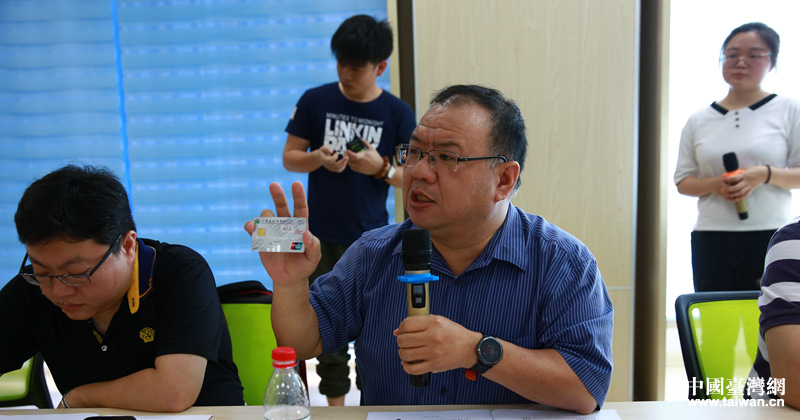 侯博士介绍办理公务卡的体验和感受。(图片来源:广西台办)