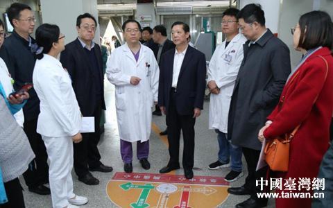 “三进”活动工作组到山东省立医院急救绿色通道参观。(图片来源:山东省台港澳办)