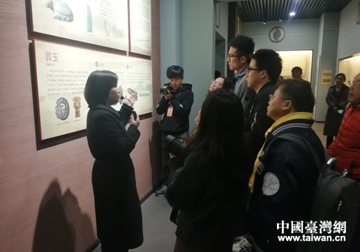 两岸媒体记者在工作人员的讲解下参观黄国故城博物馆。(图片来源:河南省台办)