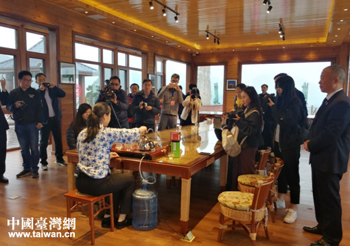 茶艺师向大家展示信阳毛尖冲泡技艺。(图片来源:河南省台办)