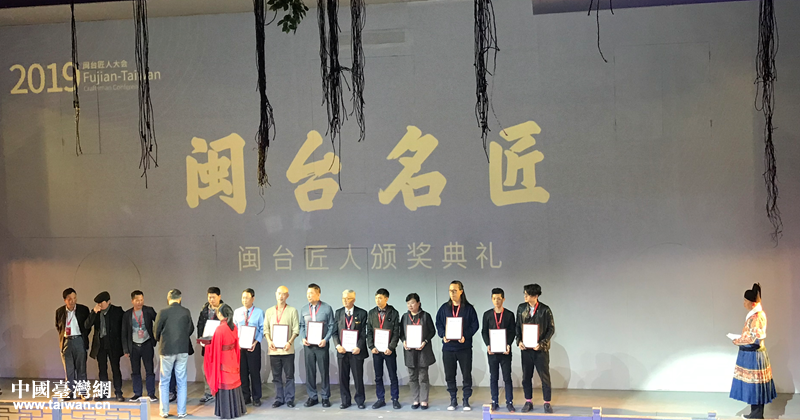 为闽台匠人中的杰出代表颁发“闽台名匠”等相关荣誉称号证书。(图片来源:福州市台港澳办)