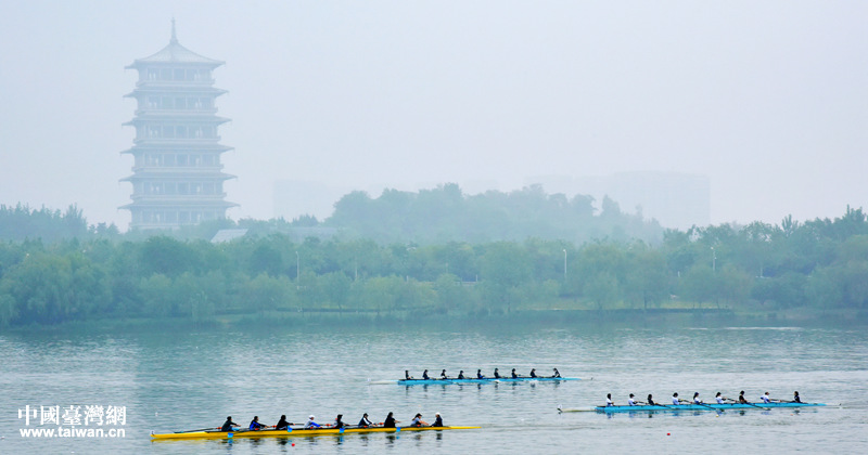 “2019‘灞河竞渡’赛艇挑战赛暨两岸赛艇文化研习营”在西安举行。(图片来源:陕西省台办)