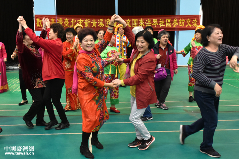 社区举办了专场文艺演出,海琴社区百姓艺术团的成员表演了葫芦丝、腰鼓、舞蹈等两岸民众耳熟能详的节目,“爱我中华”的音乐响起,全场响起一阵阵掌声。和着欢快的乐曲,交流团成员与社区居民手拉手、肩并肩,共同载歌载舞,把交流活动推向了高潮,现场洋溢着浓浓的两岸同胞亲情。(中国台湾网、山东省台港澳办联合报道)