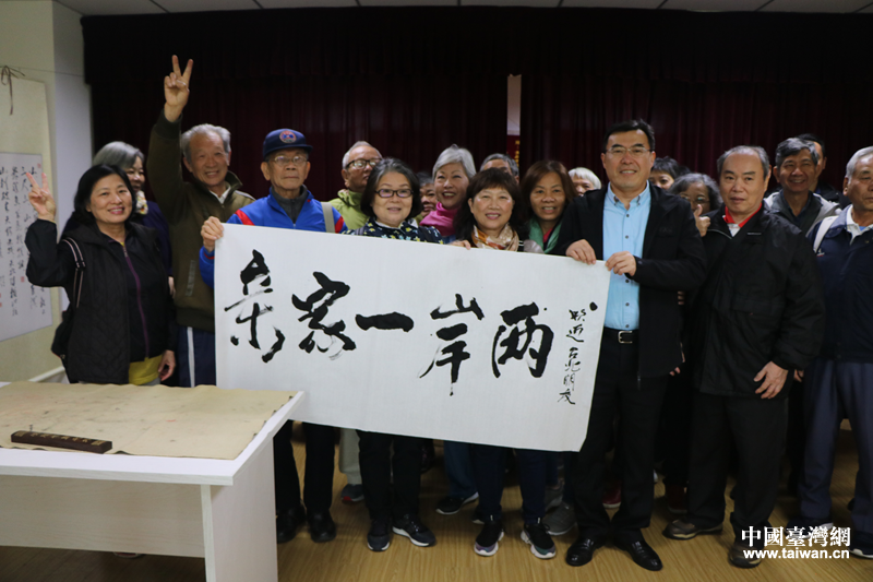 参访中,交流团参观了海琴社区建设情况,对社区规范的服务、有序的管理表示赞叹;欣赏了社区居民传统手工艺术品制作,对纸笸箩、剪纸等技艺称赞不已,纷纷举起社区赠送的剪纸作品合影留念;社区居民用心准备了新鲜荠菜大包、黄米大包,交流团成员饶有兴致的学习包包子的技巧,品尝山东面食的美味;社区爱好书法的居民现场挥毫泼墨写下“两岸一家亲”,新青溪协会理事王朝宗感慨道:“两岸同胞一家亲,彼此关怀心连心,水到渠成统一后,中华民族必复兴!”