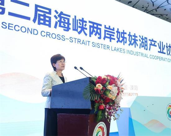 江苏省委统战部副部长马连美出席年会并致辞。她指出,第二届海峡两岸姊妹湖产业年会在江苏举办,必将有力推动苏台全方位、多层面交流合作,促进海峡两岸湖泊旅游产业的繁荣发展。她希望本次年会抢抓先机,顺势而为,做足做好做活“水”文章,努力把海峡两岸姊妹湖建设成合作共赢之湖、和平团结之湖、融合发展之湖,通过做大做强两岸湖泊产业发展的“朋友圈”,更好地为深化两岸融合发展、实现同胞心灵契合聚心聚力聚智,为推动两岸关系和平发展,推进祖国和平统一进程,共圆中华民族伟大复兴的中国梦作出更大的贡献。