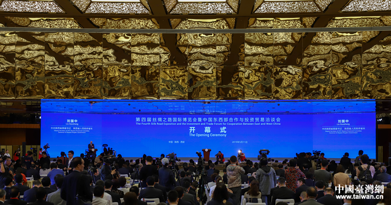 第四届丝绸之路国际博览会暨中国东西部合作与投资贸易洽谈会开幕式。(图片来源:陕西省台办)