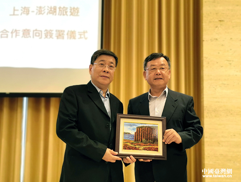 上海与澎湖签署三项旅游合作意向书,进一步加强城市间交流合作。 图为签约仪式现场。(来源:上海市台办)