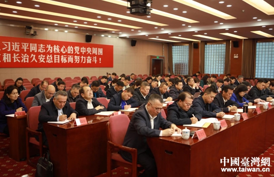 会议强调,要加强党对对台工作的集中统一领导,全面贯彻落实中央对台工作决策部署,坚持“和平统一、一国两制”方针,坚持一个中国原则,坚决反对和遏制“台独”分裂活动,秉持“两岸一家亲”理念,贯彻好以人民为中心的发展思想,坚持稳中求进工作总基调,坚持不懈做争取台湾民心工作,以扩大新台两地经济文化交流合作、持续深化新台两地经济社会融合发展、推动两岸同胞共同弘扬中华文化为着力点,为推动两岸关系和平发展,推进祖国和平统一进程作出新的更大贡献。