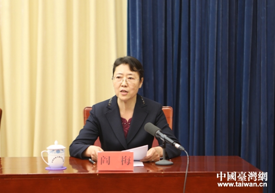 新疆维吾尔自治区党委台湾工作办公室、自治区人民政府台湾事务办公室主任阎梅作对台工作报告。(图片来源:新疆台办)
