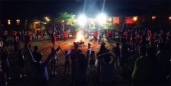 随着熊熊篝火在黑夜中燃起,两岸婚姻家庭成员们拉起手,围着篝火跳起了欢快的舞蹈。晚会上,最欢乐的莫过于两岸婚姻的“爱情结晶”。为了让孩子们玩得尽兴,家长们用双手搭起了“城门通道”,让孩子们往返穿梭,玩起了穿山洞的游戏。此次,从人群中突然传出了“祝你生日快乐”的歌声。原来,当天正是台商赵雨君的太太万宁一的生日,为了给太太一个意外的惊喜,赵雨君准备在篝火晚会上为太太送上生日祝福。在赵雨君的歌声中,万宁一面带羞涩地从人群中走到丈夫身边,在场的小家庭都被这一场景所感染,大家齐声唱起了生日歌。“结婚那么多年,吵架时谁让着谁?”主持人问道,“我们从来不吵架。”赵雨君回答,全场回应起感动的掌声。赵雨君轻轻搂着妻子,切开生日蛋糕分享给在场的小朋友们,与大家一起共享他们相濡以沫多年两岸婚姻的甜蜜与喜悦。