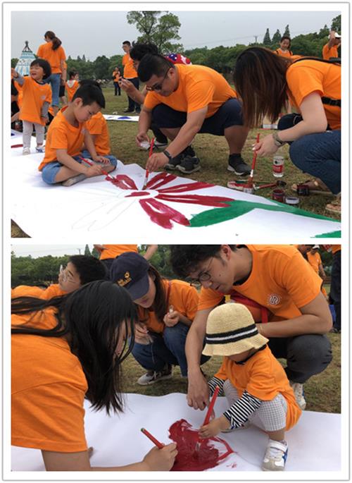 亲子涂鸦是这次联谊活动的“压轴戏”。数张大幅白色画纸铺陈在草地上,家长和孩子们拿起画笔、调和颜料,沿着纸上的线条精心地涂画,孩子们开心地在画纸上按上了自己的小手印。经过半个小时的通力协作,涂鸦大功告成。大家小心翼翼地把画纸拼接在一起,只见在朵朵鲜花和张张小手的簇拥下,“两岸一家亲”五个大字跃然纸上。此时,航拍机缓缓升起,两岸婚姻家庭成员们围着画作,向空中挥舞着双手。大家的脸上都洋溢着幸福的笑容,心中默默祝愿——小家庭和和美美,祖国大家庭早日团圆,两岸的明天更加美好!(江苏省台联 周振晴)
