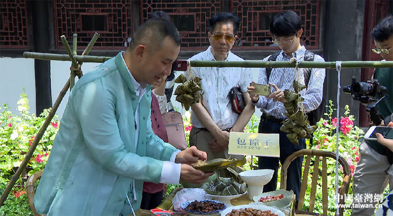当天,齐云不仅展示了苏式小脚粽、灰汤粽等的制作方式,还介绍了台湾粽子的制作方法,让游客感受到苏式粽子和台式粽子的异同。