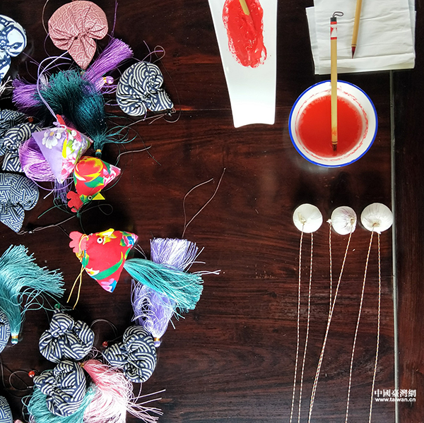 挂艾叶和大蒜。(图片来源:苏州市台办)