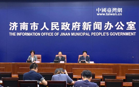 济南市委市政府召开(两岸新旧动能转换高峰论坛)新闻发布会。(图片来源:济南市台港澳办)