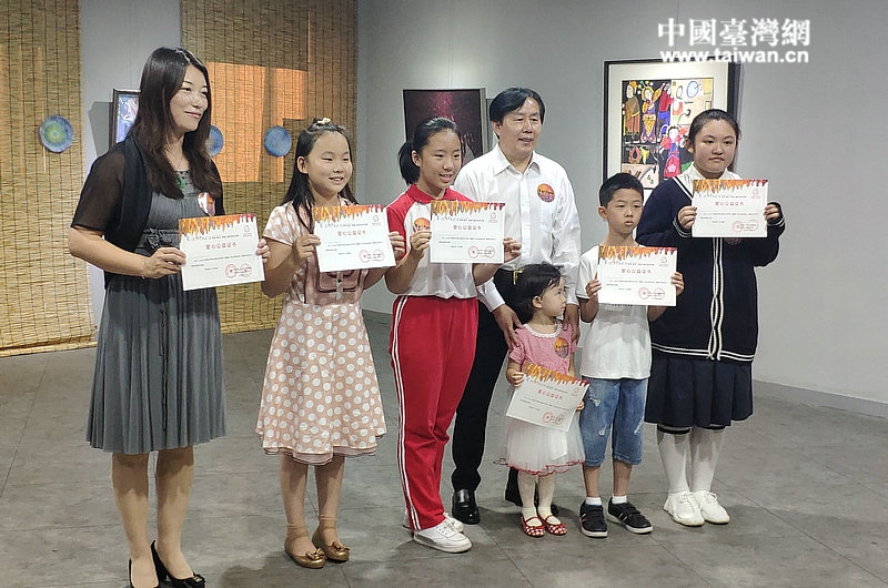 中国台湾网6月21日讯 6月14日,“沈阳·新竹双城儿童交流艺术展”在沈阳举办,辽宁省台办副主任李成山为两岸小朋友颁发爱心公益证书,沈阳市台办主任王羽轻出席活动并致辞。