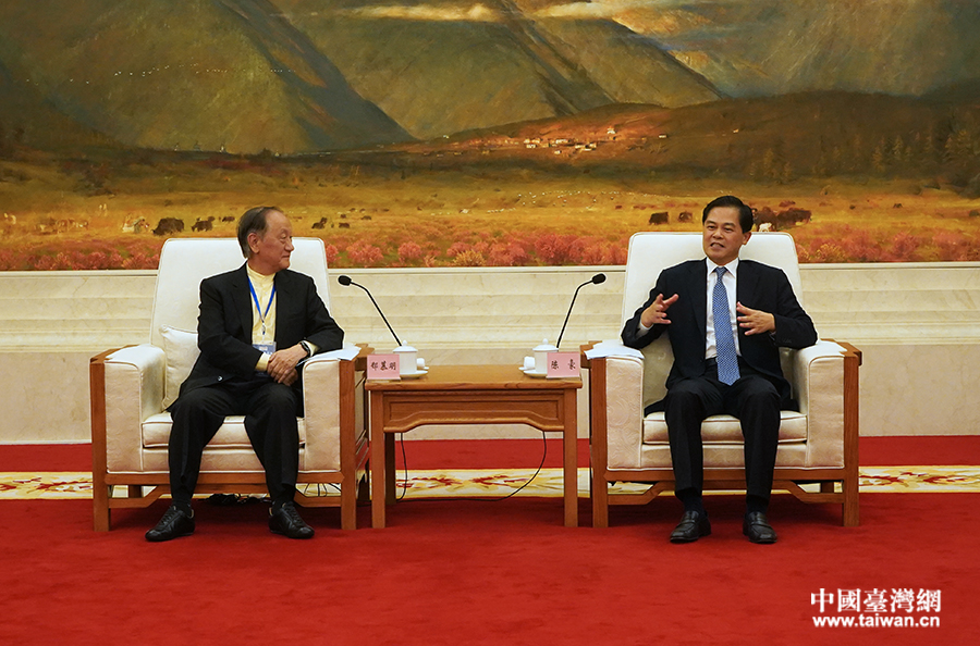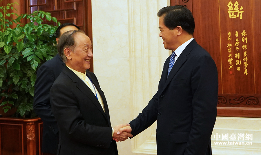 25日下午,中共云南省委书记陈豪在昆明会见了来滇出席第八届云台会的台湾新党主席郁慕明一行。(来源:云南省台办)