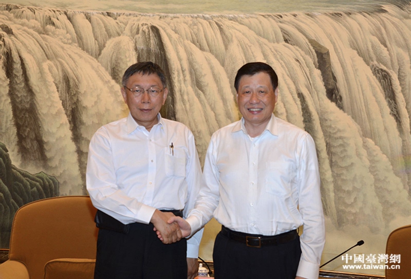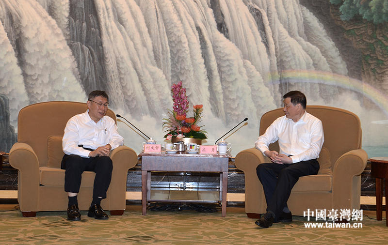 上海市市长应勇7月3日下午会见了率团来沪参加“2019上海台北城市论坛”的台北市市长柯文哲一行。(中国台湾网发)