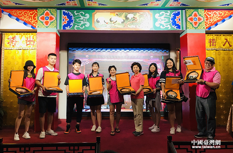 北京市台联副会长陈子云(右4)为文化拓展活动优胜队伍颁奖。(中国台湾网发)