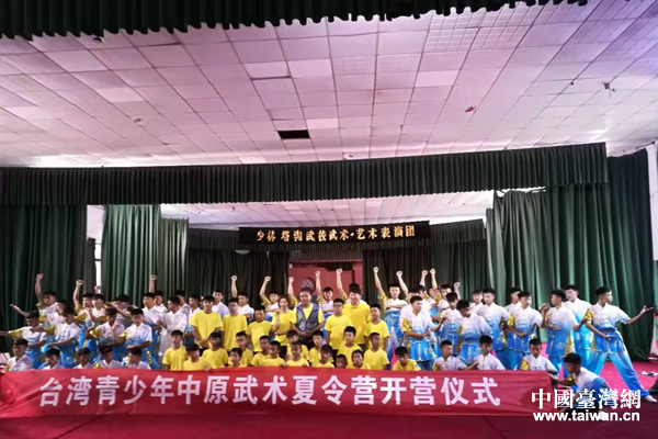 中国台湾网8月1日郑州讯 7月25日,台湾青少年中原武术夏令营在郑州市登封塔沟武校举行开营仪式。来自宝岛台湾的30余名青少年与塔沟武校师生100余人参加。