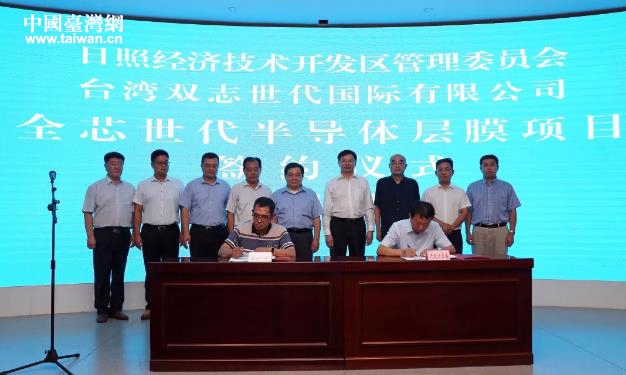 中国台湾网8月6日讯 近日,山东日照经济技术开发区与台湾双志世代国际有限公司签订合作协议,全芯世代半导体层膜项目落户开发区。区工委书记杜江涛,台湾双志世代国际有限公司董事长戴荣志出席活动。区工委委员、管委副主任邱兵与项目负责人签约。