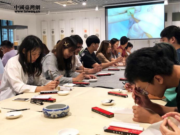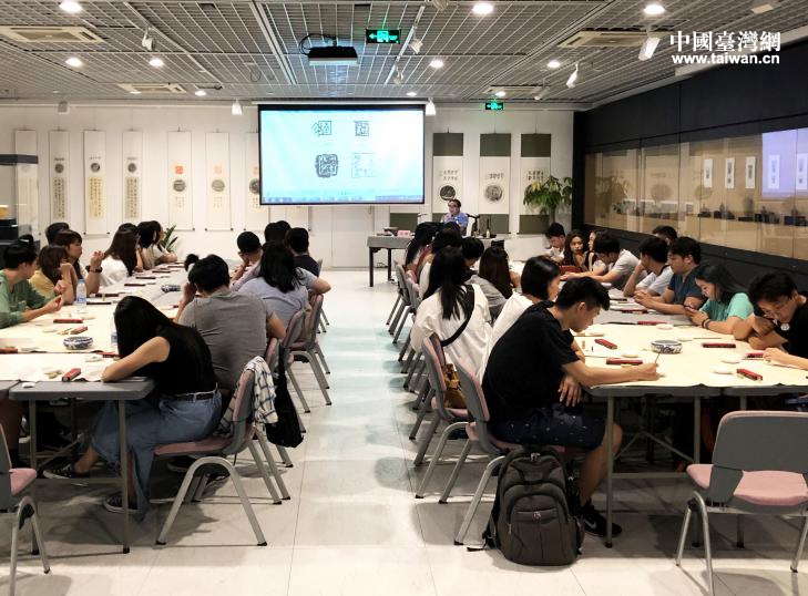 中国台湾网8月13日杭州讯 “2019中华文化研习营”活动期间,杭州市台办组织42位台湾大学生问学西泠印社美术馆,体验篆刻艺术魅力。
