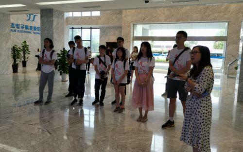 台湾大学生在扬州扬杰电子科技听取负责人介绍公司创新发展情况(图片来源:扬州市台办)