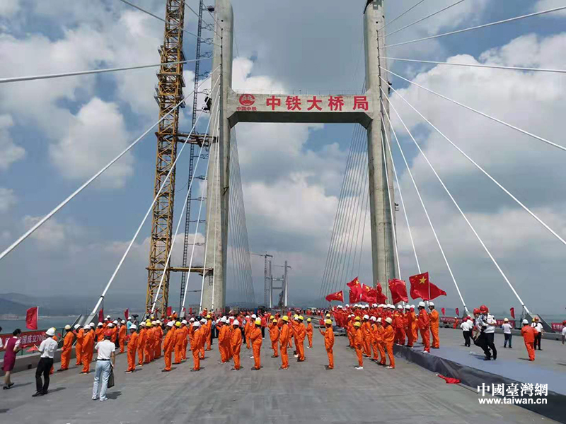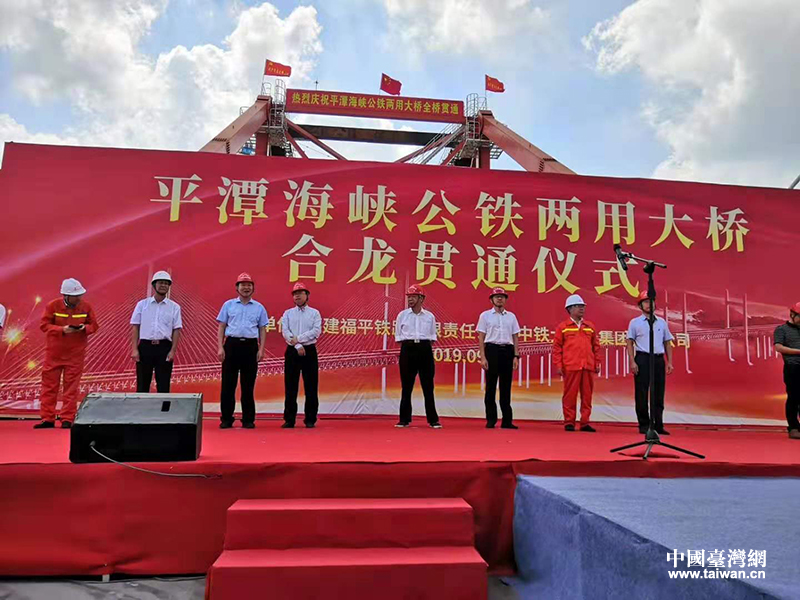 平潭海峡公铁两用大桥合龙贯通仪式。(福建省台港澳办供图)