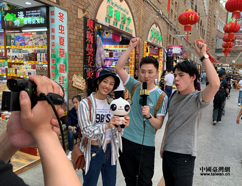 两岸青年在新疆国际大巴扎拍摄(图片来源:新疆台办)