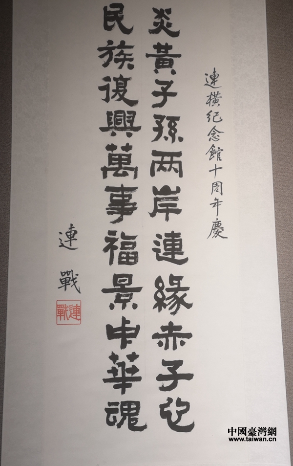 连战在连横纪念馆十周年庆上的题辞(图片来源:杭州市台办)