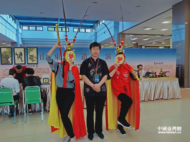 山东非遗展演精选了青少年喜闻乐见、互动性强的5个山东非遗项目6位非遗传承人赴台。高密聂家庄泥塑叫虎鲜艳的色彩、可爱的形象和清脆的叫声,使小朋友们爱不释手。社火脸谱的孙悟空脸谱,成为孩子们的最爱,大家争相戴着自己手绘的脸谱、拿着金箍棒,摆出猴哥的姿势拍照留念。东平粮画新奇的绘画方法,吸引了热爱艺术的孩子们,他们认真地趴在桌子上作画,然后高高兴兴地把自己的劳动成果带走。泰山皮影的精彩演出,使孩子们对幕后的世界产生了极大兴趣,大家都到幕后一试身手。蹴鞠文化让孩子们对足球有了全新的认识和感知。