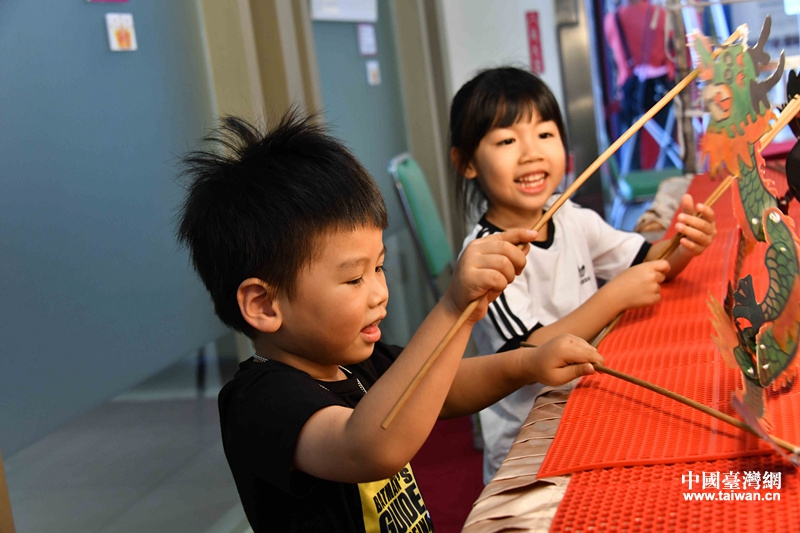 孩子试手泰山皮影(图片来源:山东省台港澳办)