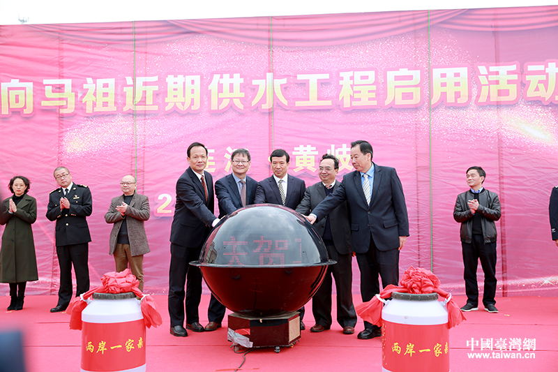 中国台湾网12月27日讯 (记者 普燕 通讯员 张宁)27日上午,连江县黄岐镇对台客运码头,福建向马祖近期供水工程启用现场,汩汩清水从黄岐配水厂经1.92公里供水专管直抵客运码头对台供水站,早已等候在旁的6艘台轮开始接水,不到15分钟,注满备水舱,驶向马祖,开启了福建向马祖正式供水的新篇章。来自福建省、市、县相关领导和马祖代表共同见证这一历史时刻。