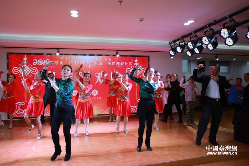 参访团一行参观了社区活动中心的数据中心、图书室、舞蹈室、书法室等活动场所,分享了社区建设和管理经验,并与社区群众一同开展“岁末联欢”活动。大家手拉着手共唱歌曲“龙的传人”和“我们都是一家人”,共跳“小苹果”等健身舞,还一同开展了多种互动游戏,相互赠送了“根生同源一家亲”等书法作品。活动气氛热烈祥和,两岸群众对联欢活动热情高涨,相约明年还要再相聚再联欢。