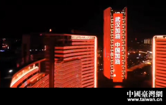 中国台湾网2月19日讯 “武汉加油,中国加油。”“众志成城,共战疫情。”杭州市滨江区、余杭区、萧山区楼体大屏相继亮起的声光,用中国红刻出了中国抗击疫情的决心,铿锵有力地为战胜疫情加油助威。