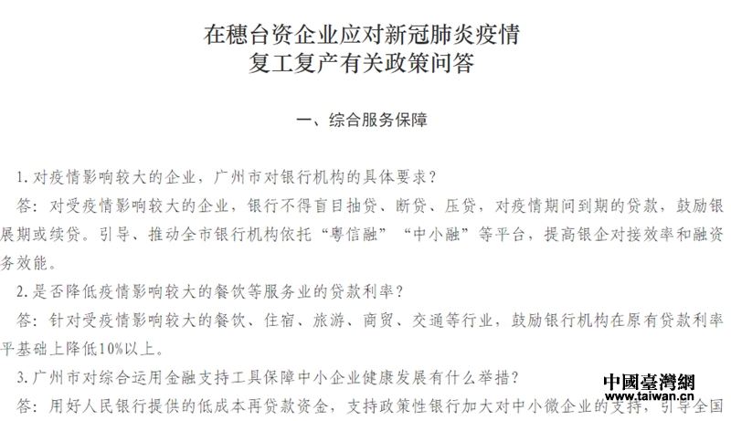 附:《在穗台资企业应对新冠肺炎疫情复工复产有关政策问答》节选: