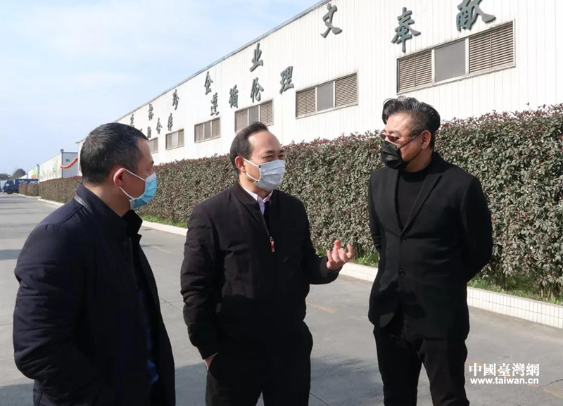 四川省台办主任罗治平(中)调研台企中延榕珍菌业公司(图片来源:四川省台办)