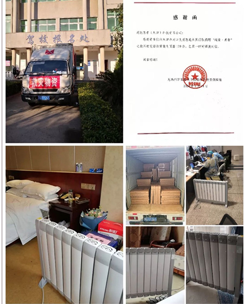 新冠肺炎疫情爆发以来,该公司勇担社会责任,自1月30日起,先后向湖北省荆州市第二人民医院、孝感市慈善总会、武汉市青少年发展基金会、湖北省慈善总会捐赠了4批共计1180台价值273万元的节能电暖器,用于荆州市第二人民医院病房、孝感市已确诊重症患者病房、武汉三镇十余家社区医院及卫生服务中心、武汉国际展览中心方舱医院一线医护人员及执勤干警、武汉洪山区石牌岭职高方舱医院病房、武汉青山国资集团北湖名居隔离点等多地抗击疫情,彰显了天津台资企业的社会责任与担当。