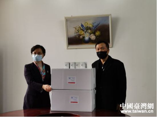绍兴市委常委叶卫红向绍兴市台协会赠送口罩、额温仪等防疫物资。 (中国台湾网 发)