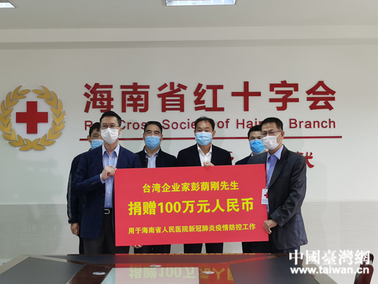 中国台湾网2月27日讯 26日,受台湾企业家、台湾中国航运荣誉董事长彭荫刚委托,海南省台办工作人员将彭先生捐赠的100万元人民币转交海南省红十字会,此笔善款将专项用于海南省人民医院抗击新冠肺炎疫情。这是截至目前台胞为支援海南抗击疫情捐赠的最大一笔款项。