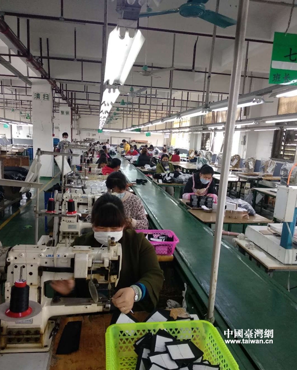广西宝悦皮具有限公司车间工人正在紧张作业(图片来源:广西玉林市台办)