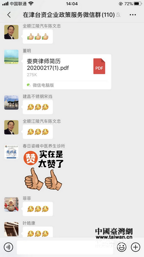 天津市台协会长罗文德会长说,这次市台办推出的“台企e码通”为企业复工复产、了解相关政策提供了便利,受到企业一致好评。下一步市台协要继续与在津台资企业的保持密切联系,及时对企业反映的复工复产中出现的困难和问题,向有关单位进行反馈,帮助做好协调服务工作。