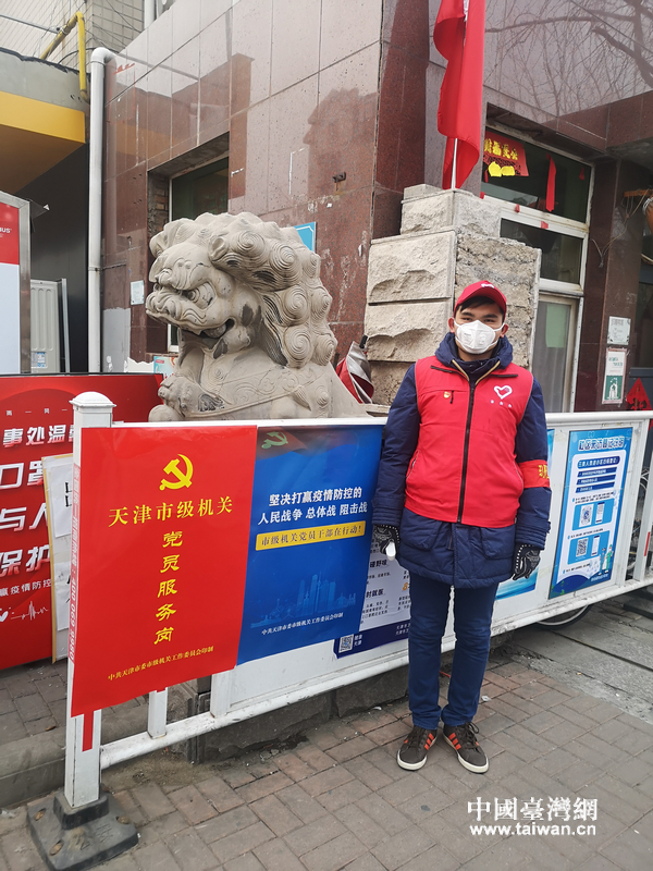 中国台湾网3月26日讯 在天津市委台办党员干部下沉社区防控疫情的战场上,青年成为了一道道靓丽的风景线。吴晓嘉、黄晋、冷松、闫学博、王敏、赵高超、戴旭斌……都是“80后”“90后”的年纪,正值青春韶华。在接到市委下沉社区的通知后,他们纷纷主动递交“请战书”,第一时间奔赴各自的责任点位,勇挑重担,迅速成长,用奉献和奋斗为自己留下了宝贵的青春记忆。