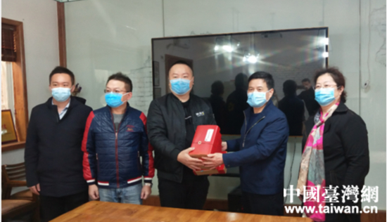 王二虎向企业赠送防疫用品。 (中国台湾网 发)