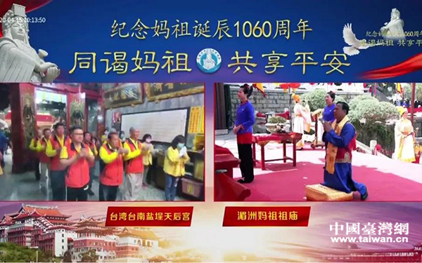 来自海外国家和地区的妈祖文化机构代表也通过视频连线“云端”朝拜妈祖,表达了弘扬妈祖大爱精神,守望相助、同舟共济、携手战胜疫情的共同愿望。(中国台湾网、福建省台港澳办联合报道)