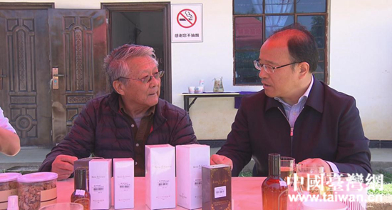 玉溪市委副书记、市长张德华(右)与台商陆传君在种植基地座谈交流。 (中国台湾网 发)