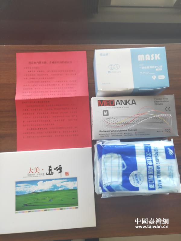 中国台湾网5月7日讯 日前,内蒙古自治区台办和赤峰市台办为部分定居台湾的内蒙古籍同胞邮寄了“爱心抗疫包”,送去了家乡父老乡亲最深切的关怀和慰问。