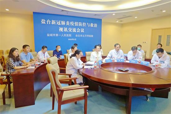 中国台湾网5月20日盐城讯 19日下午,盐城市第一人民医院和台北市万芳医院举办新冠肺炎疫情防控与救治的视讯交流会议,盐台15位医疗专家参与交流,分享“抗疫”经验。