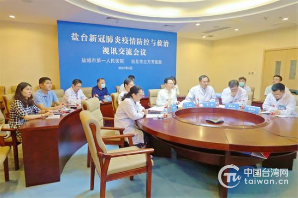 中国台湾网5月20日盐城讯 19日下午,江苏省盐城市第一人民医院和台北市万芳医院举办新冠肺炎疫情防控与救治的视讯交流会议,盐台15位医疗专家参与交流,分享“抗疫”经验。