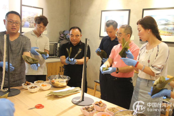 座谈会结束后,参加联谊活动的德台青年在中江县台商代表陈建仁带领下,一起动手包起了粽子。一张张翠绿的粽叶、一盆盆新鲜的糯米和一盘盘五花肉、一颗颗蛋黄,经过巧手的改变,变成了一个个小巧玲珑的粽子,也寓意着德台两地青年对未来发展的美好祝愿。(中国台湾网、德阳市台办联合报道)