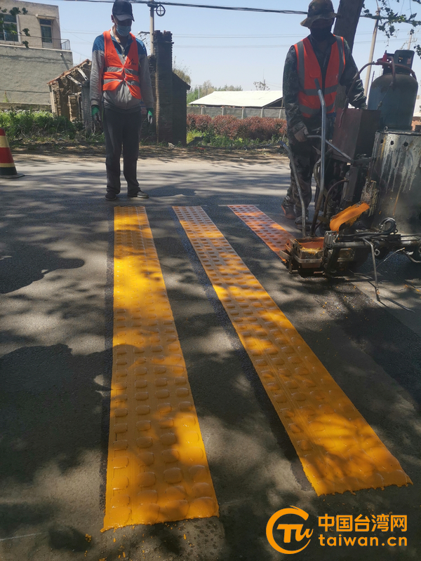 铺设道路减速带(图片来源:辽阳市台办)